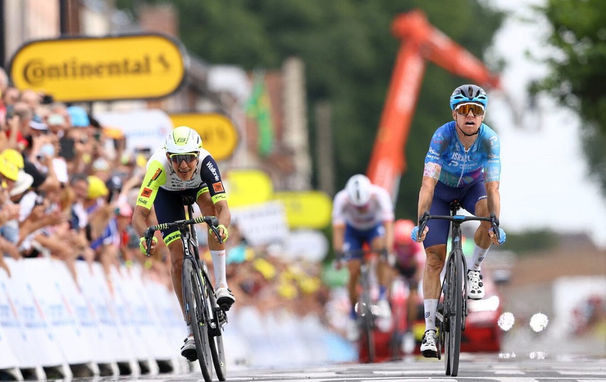 Simon Clarke barely reaches the finish line first ahead of Taco van der Hoorn during a Stage 5 victory at the 2022 Tour de France. (Image: Getty)Clarke edged out Taco van der Hoorn (Intermarche-Wanty-Gobert) in a photo finish to take the top step in the Tour de France podium after dominating the cobblestones in Stage 5. They were a part of a small breakaway group that also included Edvald Boasson-Hagen (TotalEnergies) and American rider Neilson Powless (EF Education-EasyPost), yet did not get caught by the chase pack.