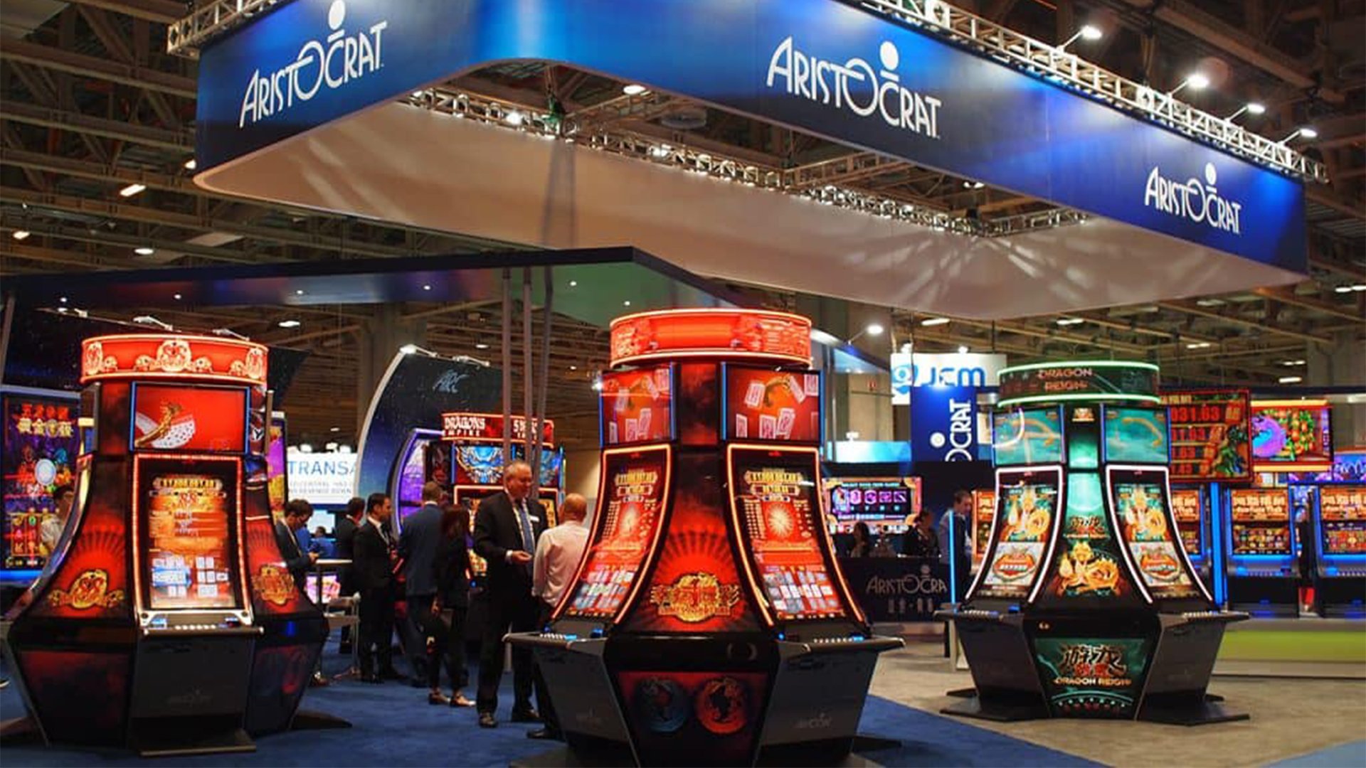 Aristocrat Leisure shows off some of its land-based equipment at an expo. The company’s plans to enter the digital space are on track. (Image: Inside Asian Gaming)