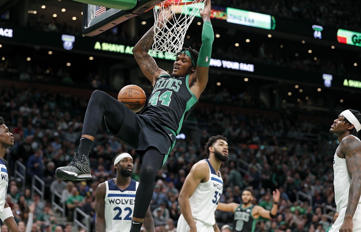 Boston Celtics center Robert Williams III throws down a dunk against the Minnesota Timberwolves on Sunday before he suffered a knee injury that could derail the Celtics’ title chances. (Image: Getty)The left knee injury occurred on Sunday when Williams went down during a victory against the Minnesota Timberwolves that saw the Celtics extend their winning streak to six games.