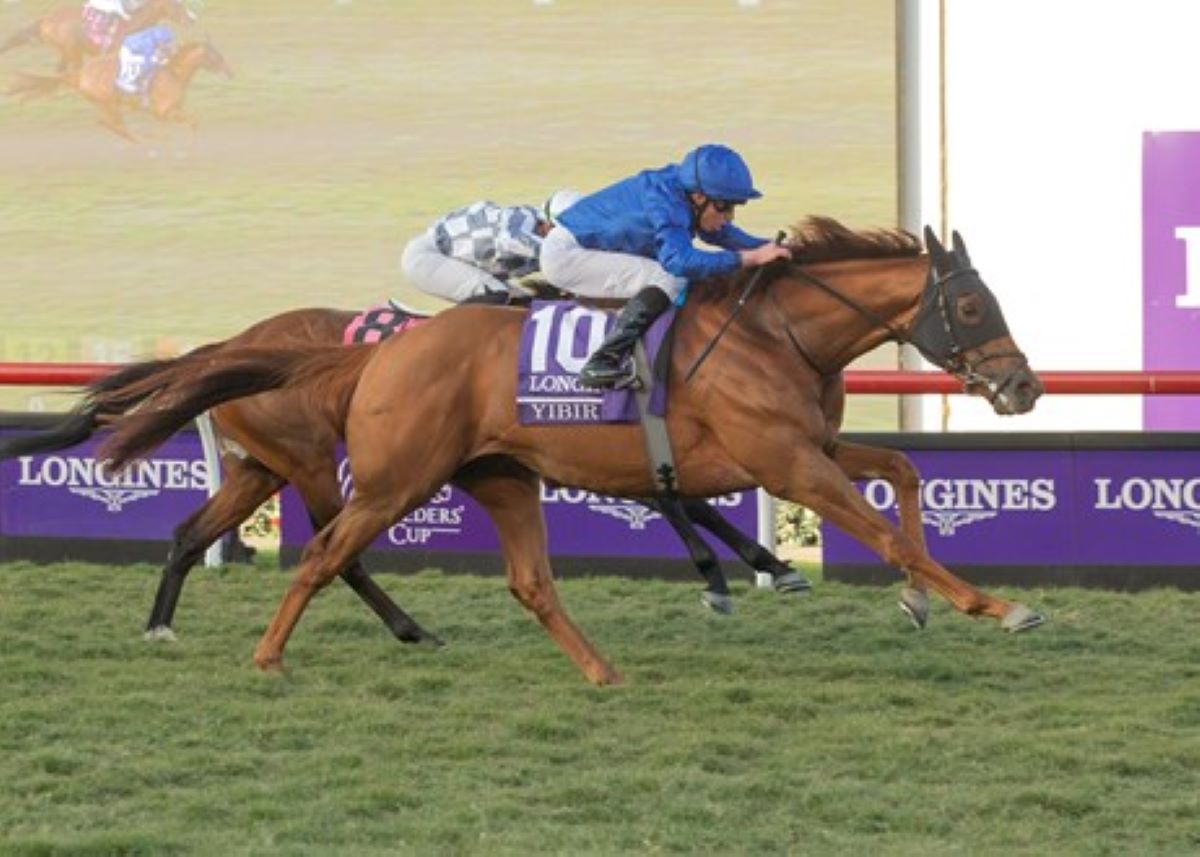 In the Sheema Classic, Yibir put on a stirring rally, coming from 15th and last to finish a neck behind multiple Group 1-winner Shahryar. Jockey William Buick took him outside and up the center of the track.