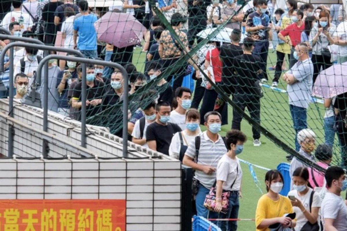 Macau residents stand in line waiting to undergo a government-ordered COVID-19 test on June 21, 2022. Macau’s casinos remain open amid the coronavirus outbreak in the gambling hub, but business is scant. (Image: AFP)