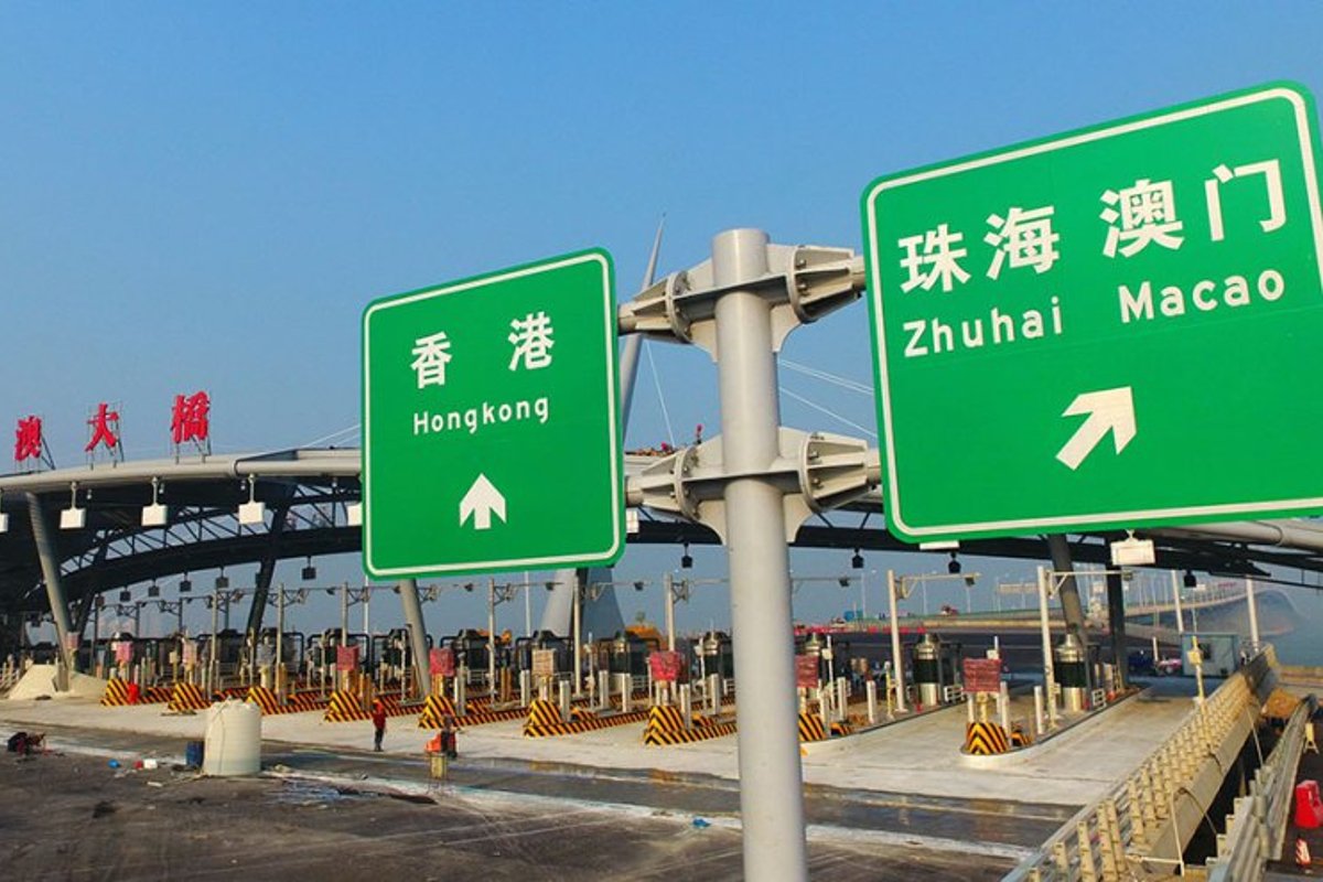 The exit ramp for Zhuhai and Macau on the Zhuhai-Macau-Hong Kong bridge. Macau is easing COVID-19 testing requirements for arriving visitors from Zhuhai. (Image: AsiaNews)