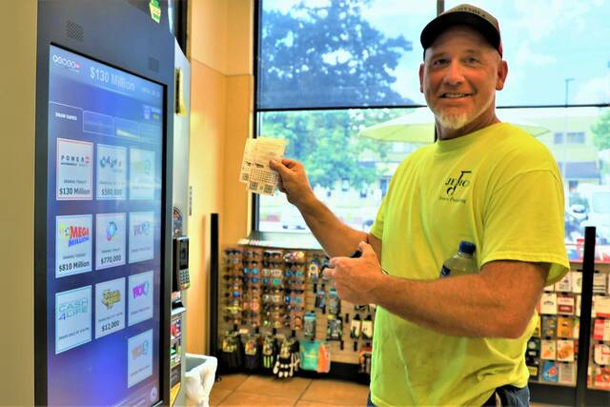 A Pennsylvania man holds up his Mega Millions tickets after purchasing them in a Sheetz convenience store on July 25, 2022. The Mega Millions jackpot for the July 26 draw is an estimated $810 million. (Image: Tribune-Review)