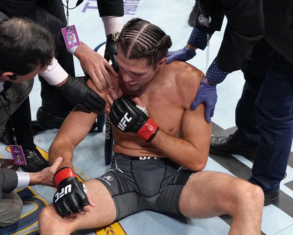 That’s when the injury occurred. Rodriguez threw out an attempted armbar from his back, a move that was more about the threat than a true attempt at a submission. Ortega pulled his right arm away, and apparently caused the dislocation at that point.