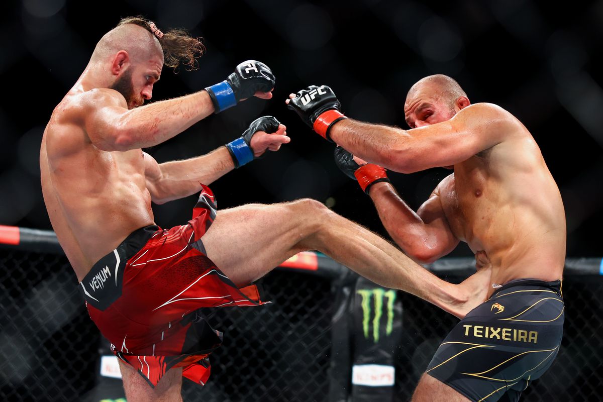The fight saw both men take extensive punishment over the course of nearly 25 minutes. The fight started with Teixeira using his wrestling skills to take Prochazka to the ground and land heavy shots from the mount position.