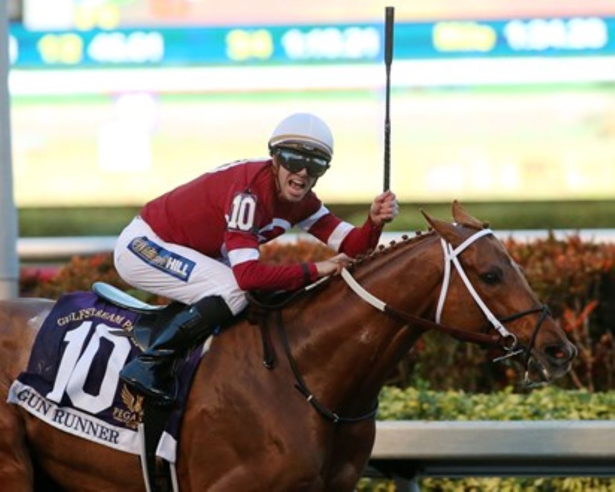 Gun Runner is the son of noted Argentinian stallion Candy Ride. He is out of the Giant’s Causeway mare Quiet Giant, who won the Grade 3 Molly Pitcher.