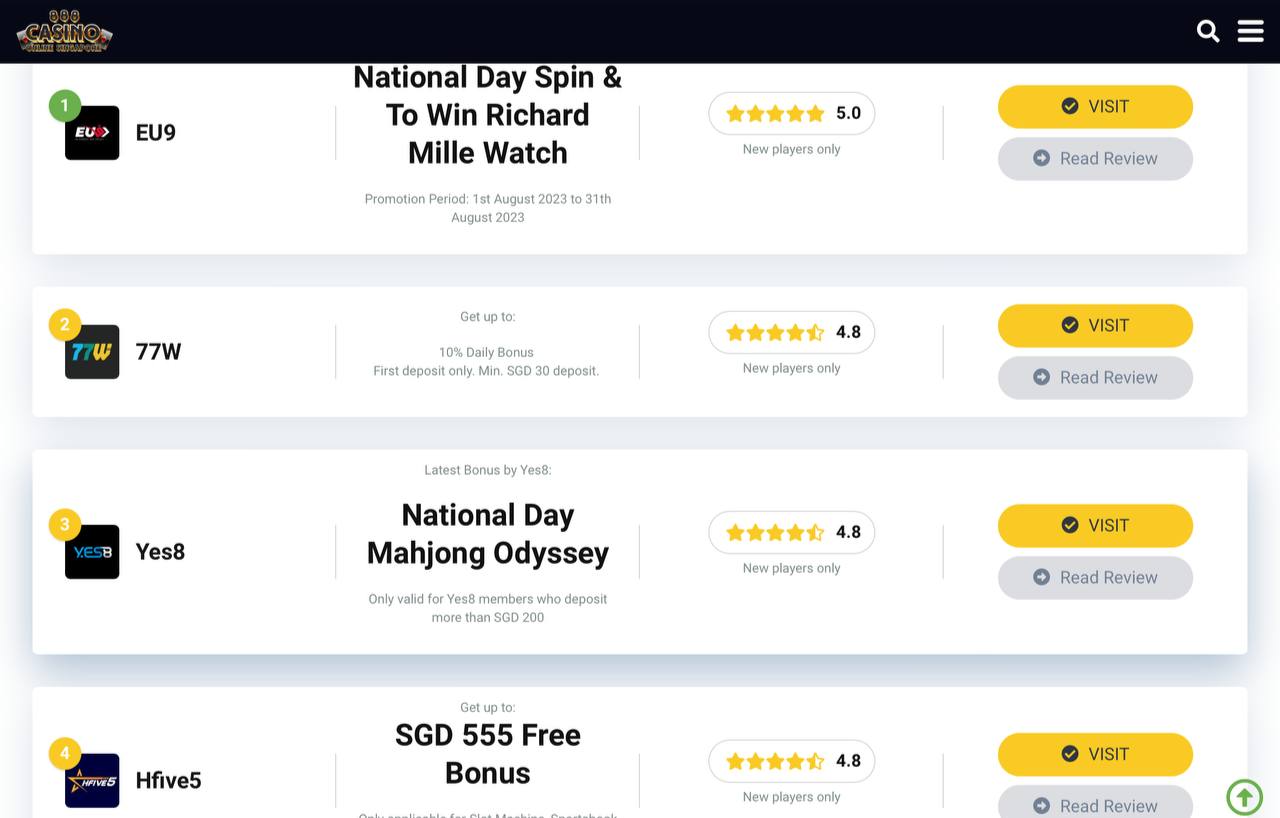 - Win Prizes: The best online casino bonus Singapore awaits the top players.