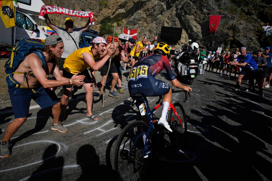 Rowdy fans cheer on Tom Pidcock during his remarkable win at Alpe d’Huez in Stage 12 of the Tour de France. (Image: Daniel Cole/AP)Pidcock — an Olympic gold medalist for England — has a bright future ahead of him, but now everyone will remember him for his dominating win at Alpe d’Huez on Bastille Day during his first-ever Tour de France.