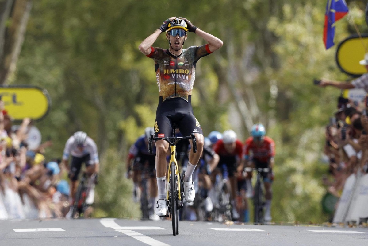 A stunned Christophe Laporte (Jumbo-Visma) crosses the finish line at Cahors to win Stage 19 of the 2022 Tour de France. (Image: Reuters)Jumbo-Visma continued their domination at the 2022 Tour de France after locking up the yellow jersey yesterday in Stage 18 thanks to Jonas Vingeaard. Instead of Wout van Aert winning at Cahors, it was his Jumbo-Visma teammate from France who rode to stunning victory.